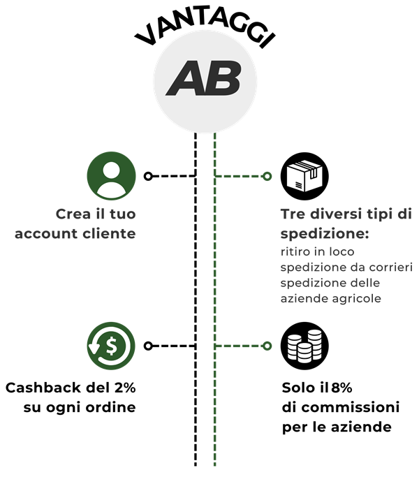 Gestione diretta o tramite magazzino Agribuyn: Le aziende possono scegliere di vendere direttamente dal proprio magazzino o di affidare la logistica ai vari corrieri partner (brt, ups, dhl, tnt, e tanti altri ancora).