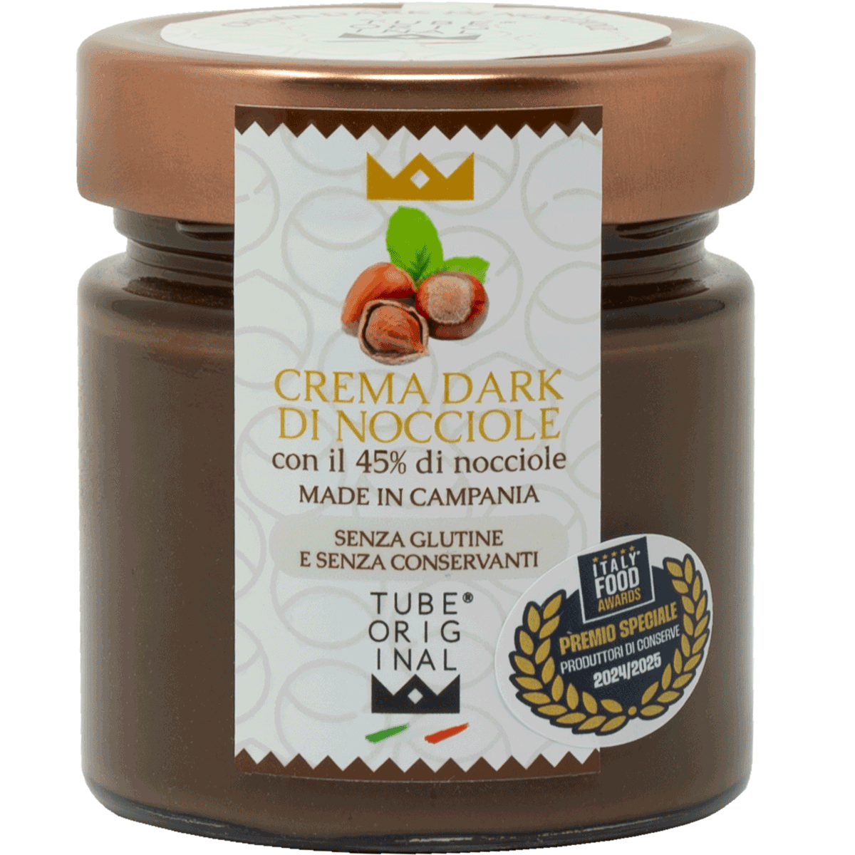 Crema Dark di Nocciole con il 45% di nocciole MADE IN CAMPANIA senza glutine e senza conservanti. 250 gr.