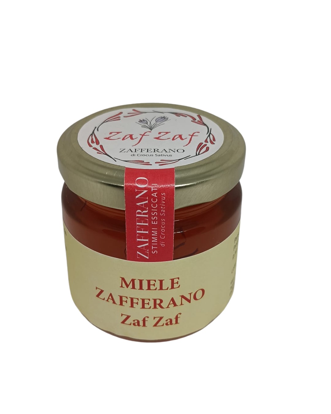 Il miele di acacia è stato scelto per la sua delicatezza che permette al suo aroma di unirsi molto bene con quello dello zafferano. Lo zafferano è stato lasciato in infusione in stimmi per preservare tutte le proprietà. Un consiglio è di lasciare gli stimmi in infusione fino a quando non sarà finito il miele, in questo modo potranno continuare a rilasciare l’aroma.