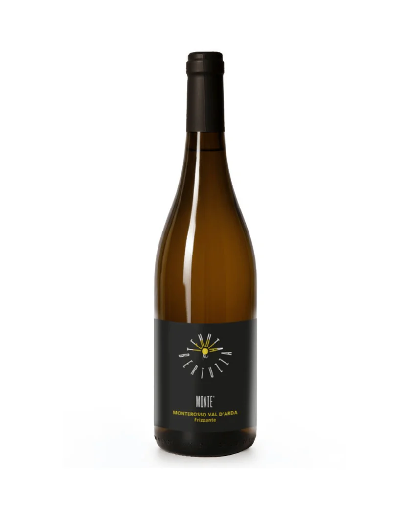 Il “Montè” è l’omaggio liquido alla collina di Monterosso, nel comune di Castell’Arquato, da cui prende il nome. È un vino che fa della leggerezza la sua forza: nasce da un sapiente uvaggio di uve bianche autoctone (tipicamente Malvasia, Ortrugo, Trebbiano e Sauvignon) che insieme creano un equilibrio perfetto tra aromaticità e freschezza. Nel bicchiere si presenta di un giallo paglierino scarico, attraversato da una bollicina fine e vivace. Al naso è delicato ma invitante, con sentori netti di frutta gialla matura e fiori di campo. In bocca è “sottile di corpo”, agile e scattante, perfetto per chi cerca un sorso dissetante che non appesantisce. La sua versatilità è leggendaria: ottimo da solo, perfetto a tutto pasto, ideale persino come base per cocktail leggeri (“sporcato” con bitter o succhi).